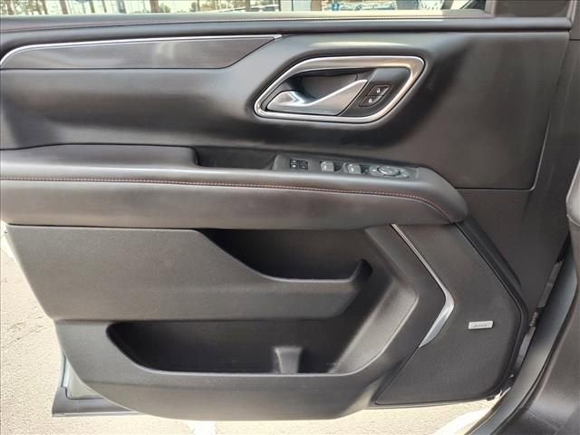 Sterling Gray Metallic 2023 Chevrolet Suburban RST 4D Sport Utility 4WD 10-Speed Automatic with Overdrive EcoTec3 5.3L V8 Local Trade In, Fresh Oil Change, Suburban RST, 4D Sport Utility, EcoTec3 5.3L V8, 10-Speed Automatic with Overdrive, 4WD, Sterling Gray Metallic, Jet Black/Victory Red Leather, 10-Way Power Driver & Passenger Seat Adjusters, 1st & 2nd Row Color-Keyed Carpeted Floor Mats, 3.23 Rear Axle Ratio, 3rd row seats: split-bench, 4-Wheel Disc Brakes, 9 Speakers, ABS brakes, Air Conditioning, Alloy wheels, AM/FM radio: SiriusXM with 360L, Apple CarPlay/Android Auto, Auto High-beam Headlights, Auto-Dimming Inside Rear-View Mirror, Auto-dimming Rear-View mirror, Automatic temperature control, Bose 9-Speaker Stereo Audio System Feature, Brake assist, Bright Front & Rear Door Sill Plates, Bumpers: body-color, Color-Keyed Carpeting Floor Covering, Compass, Delay-off headlights, Driver & Front Outboard Passenger Airbags, Driver door bin, Driver vanity mirror, Dual front impact airbags, Dual front side impact airbags, Dual-Pane Power Panoramic Sunroof, Electronic Stability Control, Emergency communication system: OnStar and Chevrolet connected services capable, Enhanced Driver Information Center, Floor Console w/Storage Area, Four wheel independent suspension, Front anti-roll bar, Front Bucket Seats, Front Center Armrest, Front dual zone A/C, Front reading lights, Fully automatic headlights, Garage door transmitter, Hands-Free Rear Power Programmable Liftgate, Heated door mirrors, Heated Driver & Front Passenger Seats, Heated front seats, Illuminated entry, Infotainment Display, LED Daytime Running Lamps, License Plate Front Mounting Package, Low tire pressure warning, Memory seat, Memory Settings For Driver, Navigation System, Occupant sensing airbag, Outside temperature display, Overhead airbag, Overhead console, Panic alarm, Passenger door bin, Passenger vanity mirror, Perforated Leather Seating Surfaces, Power door mirrors, Power driver seat, Power Liftgate, Power passenger seat, Power steering, Power windows, Preferred Equipment Group 1SP, Premium audio system: Chevrolet Infotainment 3 Premium, Premium Smooth Ride Suspension, Radio: Chevrolet Infotainment 3 Premium System, Rain sensing wipers, Rear air conditioning, Rear anti-roll bar, Rear reading lights, Rear seat center armrest, Rear window defroster, Rear window wiper, Remote keyless entry, Remote Start, Roof rack: rails only, Security system, SiriusXM Radio w/360L, Speed control, Speed-sensing steering, Split folding rear seat, Spoiler, Steering wheel mounted audio controls, Tachometer, Telescoping steering wheel, Tilt steering wheel, Traction control, Trip computer, Universal Home Remote, Variably intermittent wipers, Voltmeter, Wheel Locks (Set of 4) (LPO), Wheels: 22 x 9 Bright Machined, Wireless Charging, Wrapped Steering Wheel.